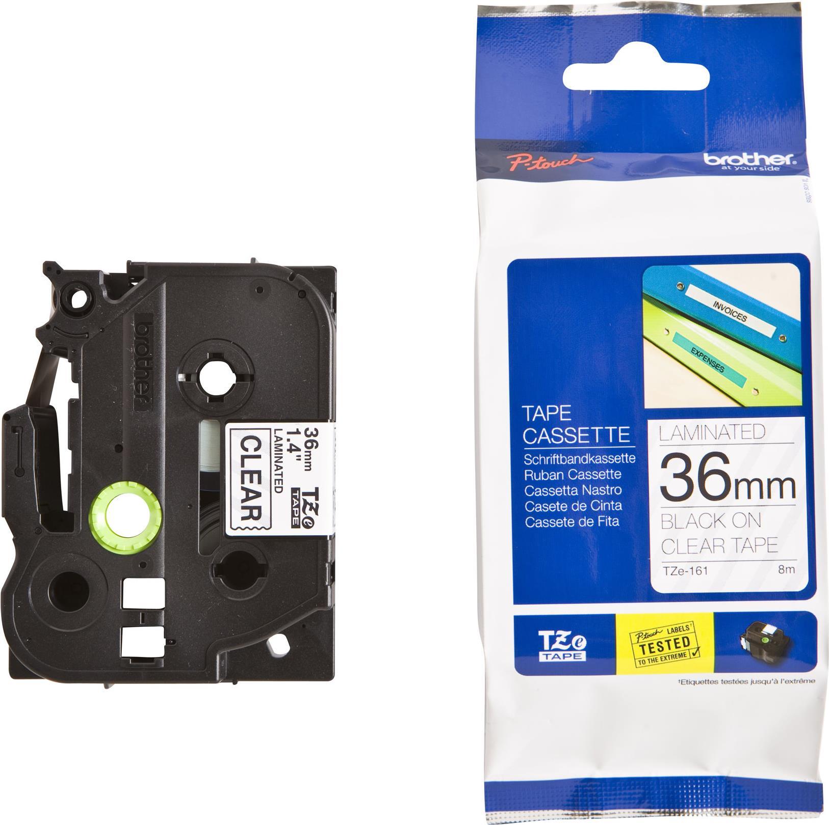 Brother TZe 161 - Laminiertes Band - schwarz auf durchsichtig - Rolle (3,6 cm x 8 m) 1 Rolle(n) - für P-Touch PT-3600, PT-550, PT-9200, PT-9500, PT-9600, PT-9700, PT-9800 (TZE161)