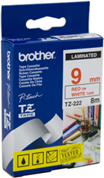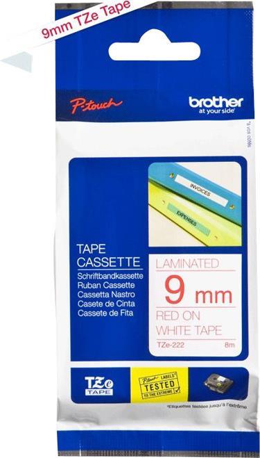 Brother TZe 222 - Laminiertes Band - Rot auf Weiß - Rolle (0,9 cm x 8 m) - 1 Rolle(n) - für P-Touch PT-1080BTS, PT-1080SBTS, PT-1090, PT-1290VP, PT-7600VP, PT-H75, PT-H75S (TZE222)