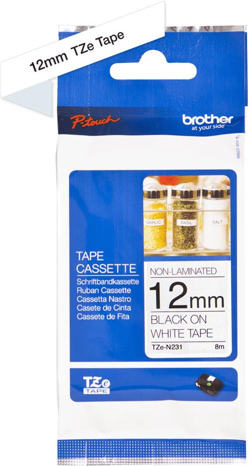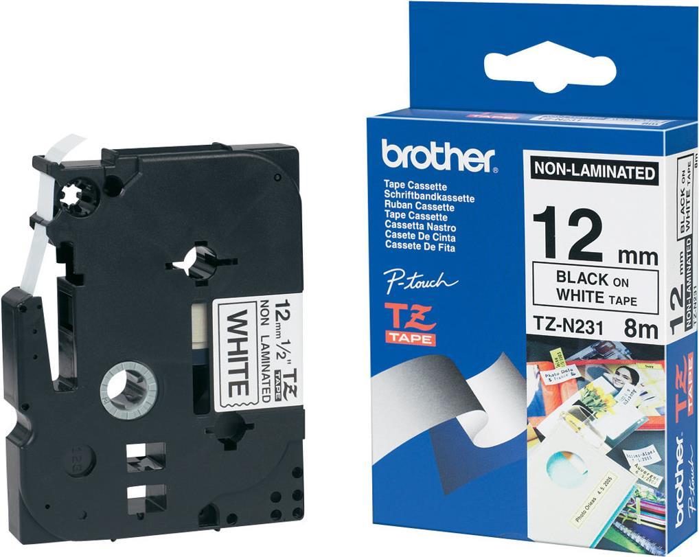 Brother TZe N231 - Nicht-laminiertes Schriftband - Schwarz auf Weiß - Rolle (1,2 cm x 8 m) - 1 Rolle(n) (TZEN231)