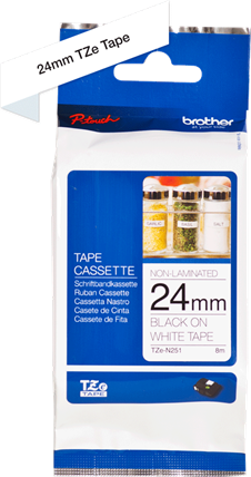 Brother TZe N251 - Nicht-laminiertes Schriftband - Schwarz auf Weiß - Rolle (2,4 cm x 8 m) - 1 Rolle(n) (TZEN251)