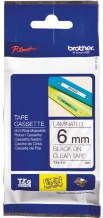 Brother TZe111 - Laminiertes Klebeband - schwarz auf durchsichtig - Rolle (0,6 cm x 8 m) - 1 Rolle(n) (TZE111)