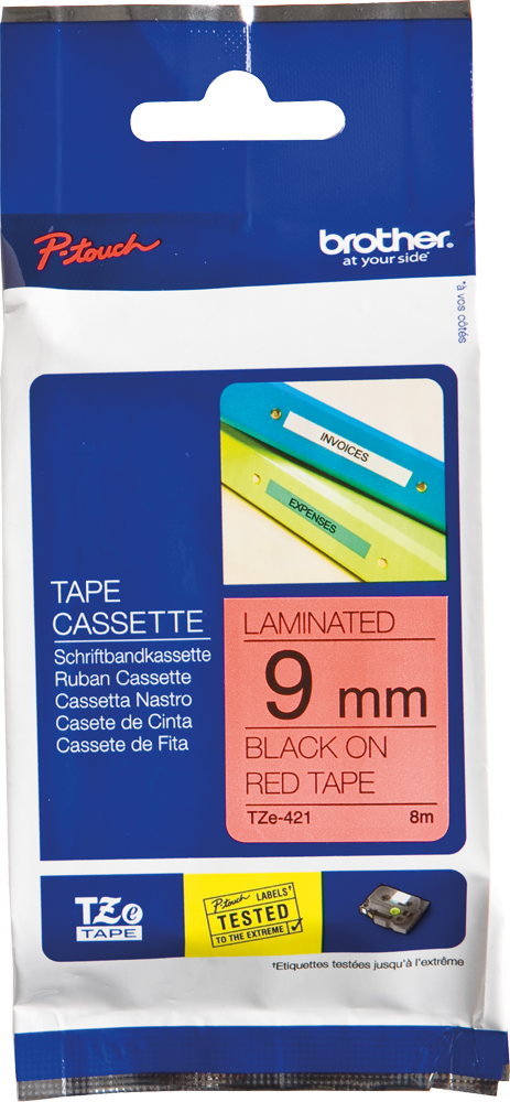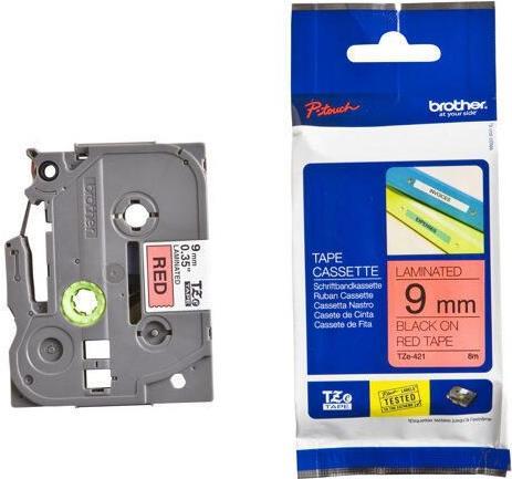 Brother TZe421 - Laminiertes Klebeband - schwarz auf rot - Rolle (0,9 cm x 8 m) - 1 Rolle(n) (TZE421)