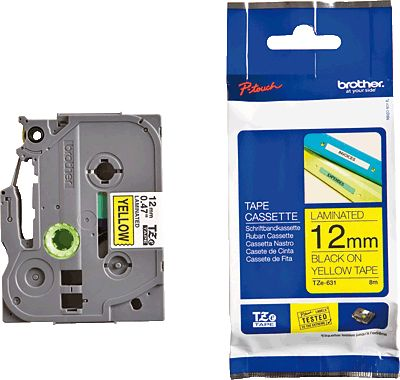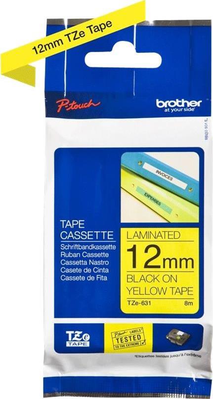 Brother TZe631 - Laminiertes Klebeband - Schwarz auf Gelb - Rolle (1,2 cm x 8 m) - 1 Rolle(n) (TZE631)