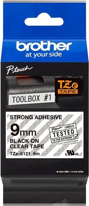 Brother TZeS121 - Laminiertes extra starkes Klebeband - schwarz auf durchsichtig - Rolle (0,9 cm x 8 m) - 1 Rolle(n) (TZES121)