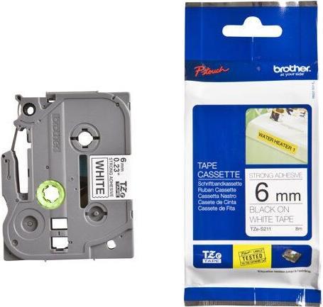 Brother TZeS211 - Laminiertes extra starkes Klebeband - Schwarz auf Weiß - Rolle (0,6 cm x 8 m) - 1 Rolle(n) (TZES211)