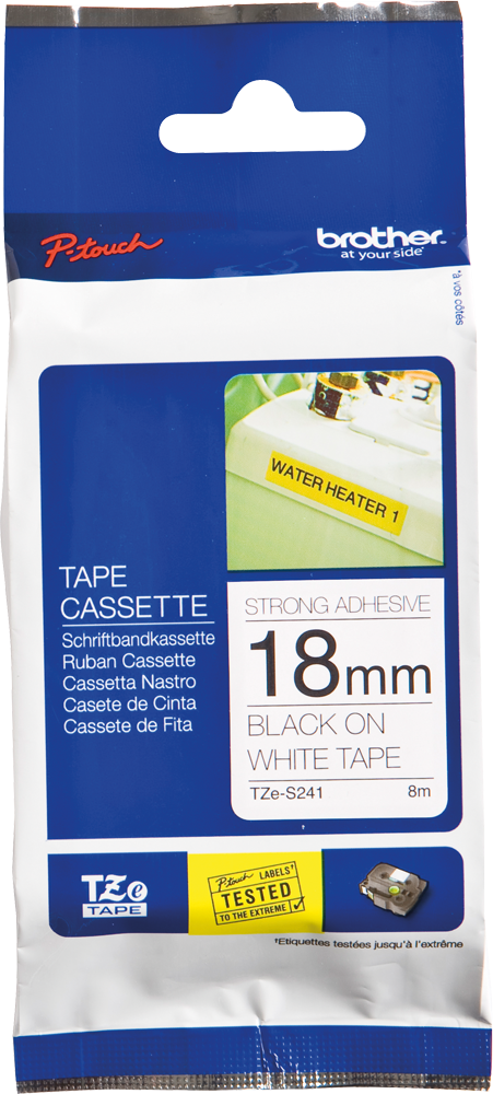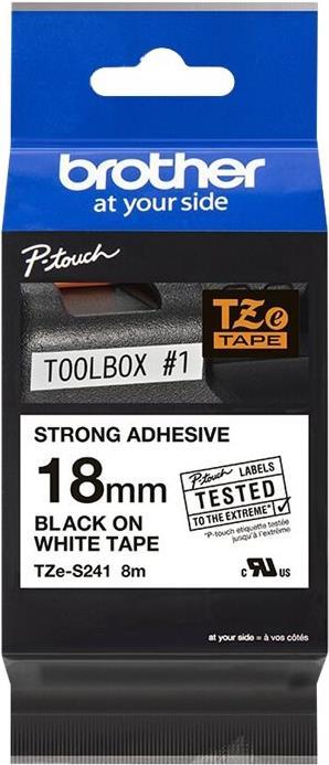 Brother TZeS241 - Laminiertes extra starkes Klebeband - Schwarz auf Weiß - Rolle (1,8 cm x 8 m) - 1 Rolle(n) (TZES241)