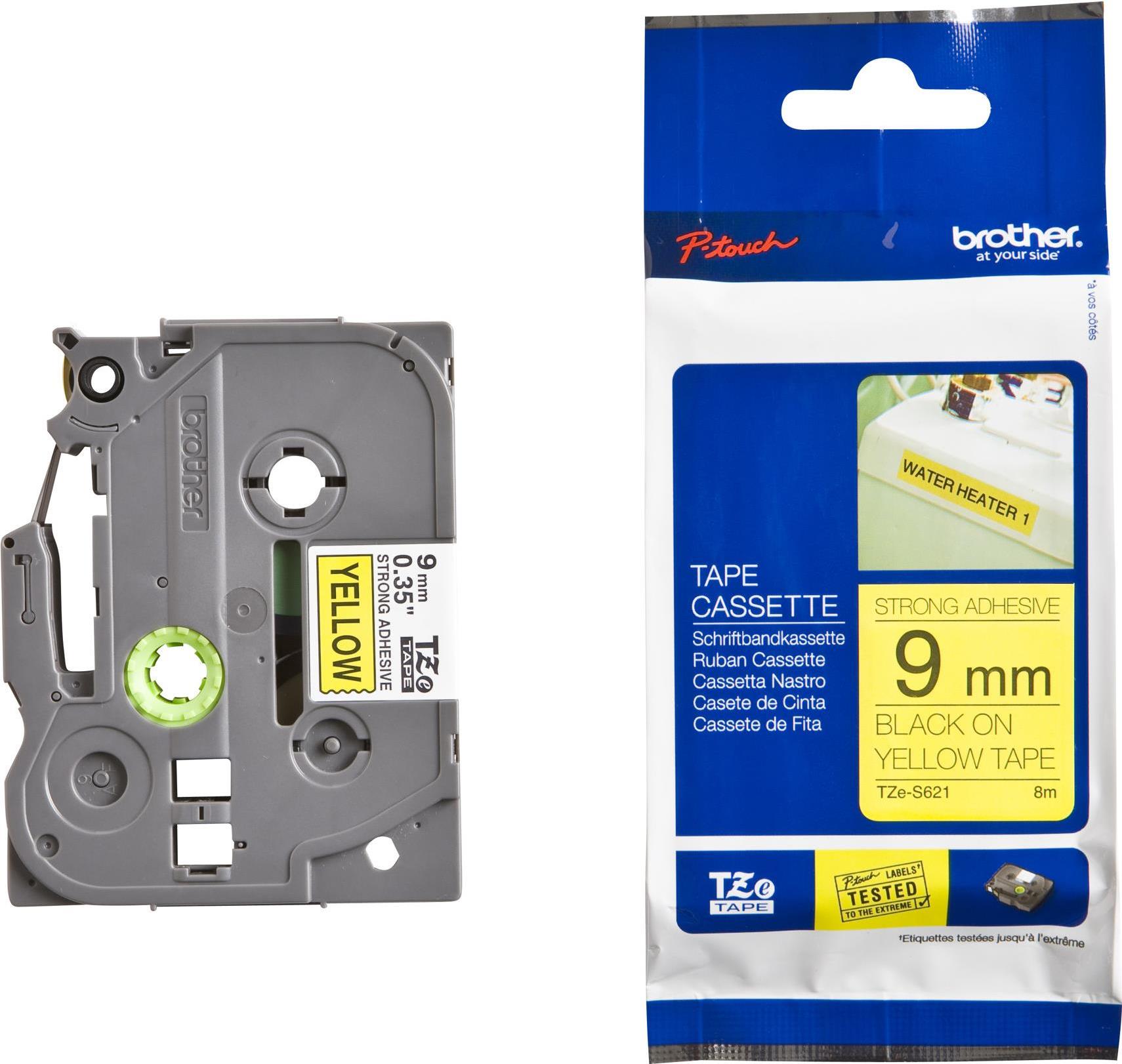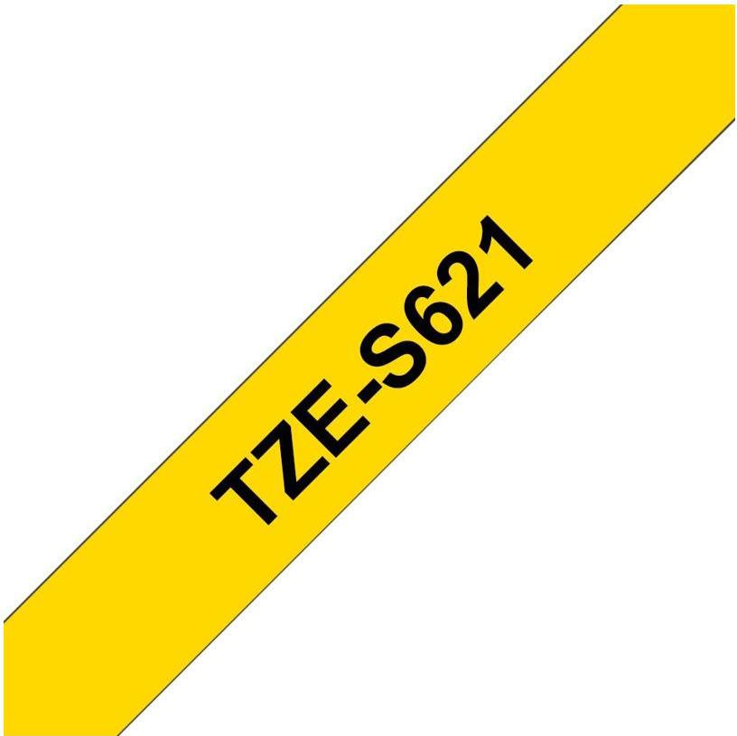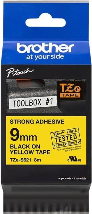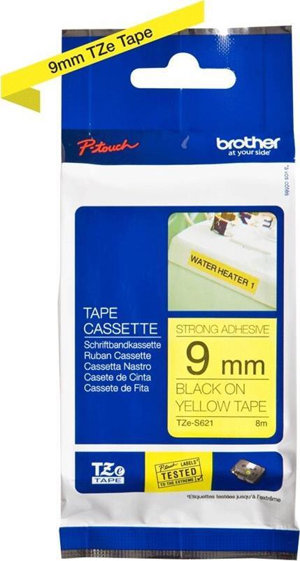 Brother TZes621 - Laminiertes extra starkes Klebeband - Schwarz auf Gelb - Rolle (0,9 cm x 8 m) - 1 Rolle(n) (TZES621)