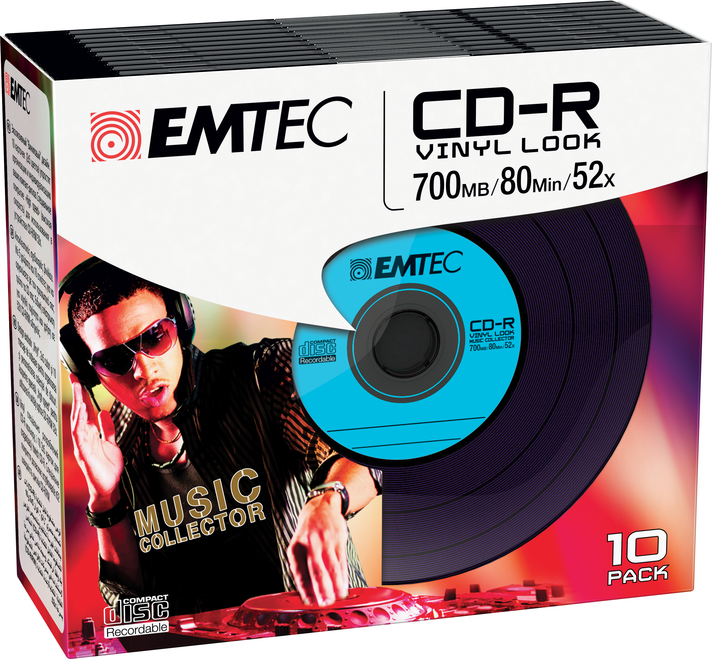 CD-R Emtec 700MB 10pcs 52x Vinyl slim NEW PACKAGING (ECOC801052SLVY)