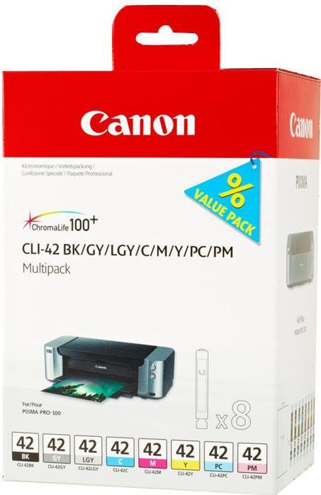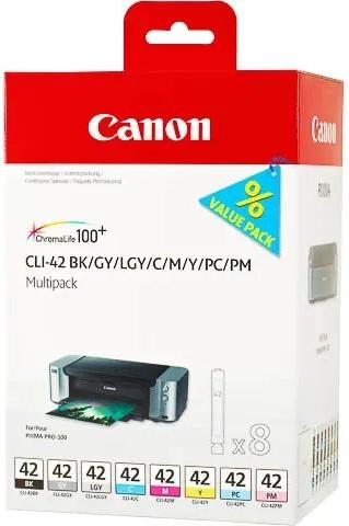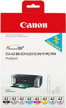 | Produktbeschreibung | Canon CLI-42 BK/GY/LG/C/M/Y/PC/PM Multipack - 8er-Pack - Grau, Gelb, Cyan, Magenta, Hellgrau, Photo Cyan, Photo Magenta - original - Tintenbehälter |