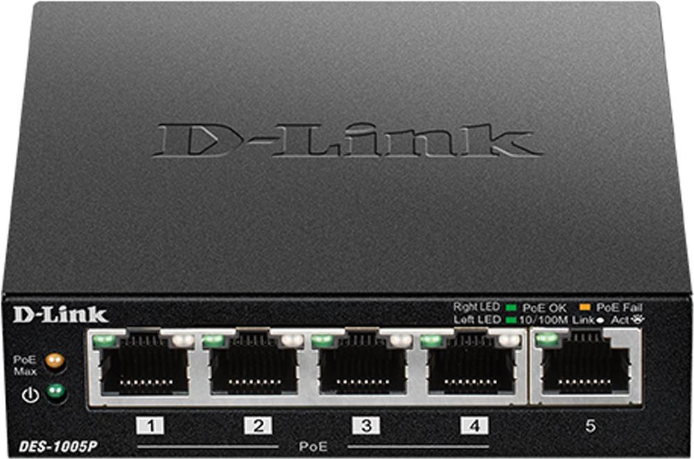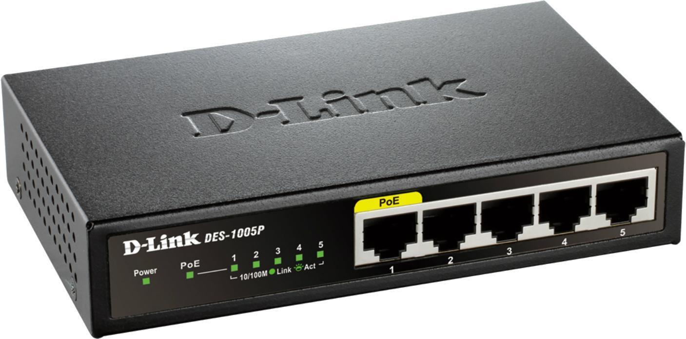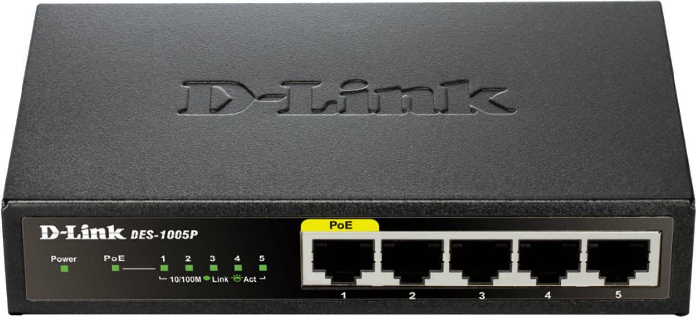 Mit dem PoE Fast Ethernet Desktop Switch DES-1005P können Unternehmen kosteneffizient von der Power over Ethernet (PoE)-Technologie profitieren. Geräte wie drahtlose Access Points, Netzwerkkameras oder IP-Telefone können direkt über das Netzwerkkabel mit Strom versorgt werden. Zudem können Sie mithilfe des Switch zusätzliche Ethernet- Geräte wie Computer, Drucker und Netzwerkspeichersysteme (NAS) zu Ihrem Netzwerk hinzufügen. Der DES-1005P ist mit einem PoE-Port ausgestattet und spart dank der Green Ethernet-Technologie von D-Link Energie, wenn er nicht genutzt wird. Das lüfterlose Design sorgt für einen geräuschlosen Betrieb, was das Gerät zur idealen Lösung für Büroumgebungen, Bibliotheken oder Meetingräume macht.
