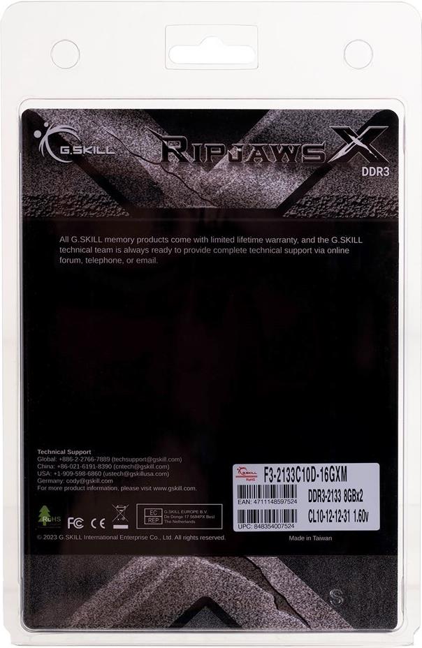 DDR3 16GB PC 2133 CL10 G.Skill KIT (2x8GB) 16GXM RipjawsX (F3-2133C10D-16GXM)