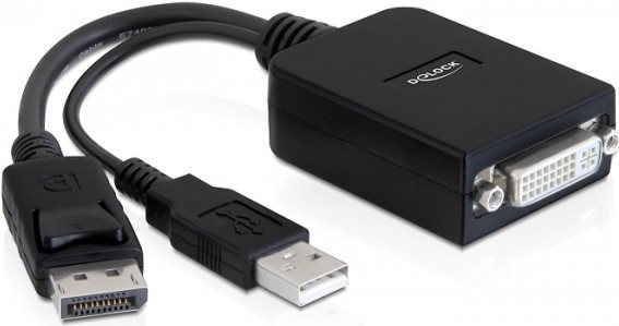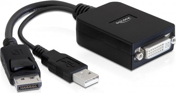 DeLOCK Adapter Displayport Stecker > DVI-I 24+5 Buchse Aktiv - Adapter - DisplayPort (M) - DVI-I 24+5 (W), USB Typ A - (61855)