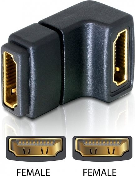 Mit diesem HDMI Adapter von Delock können Sie einen HDMI Stecker in eine Buchse umwandeln und diese um 90° nach unten abwinkeln.
