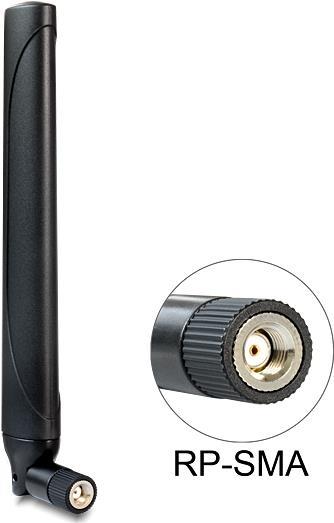 Delock LTE RP-SMA antenna with flexible joint - Funkmodemantenne - 0 dBi (für 790 bis 960 MHz), 1 dBi (für 1,71 GHz - 1,88 GHz), 2,5 dBi (für 2500 MHz - 2600 MHz) (88428)