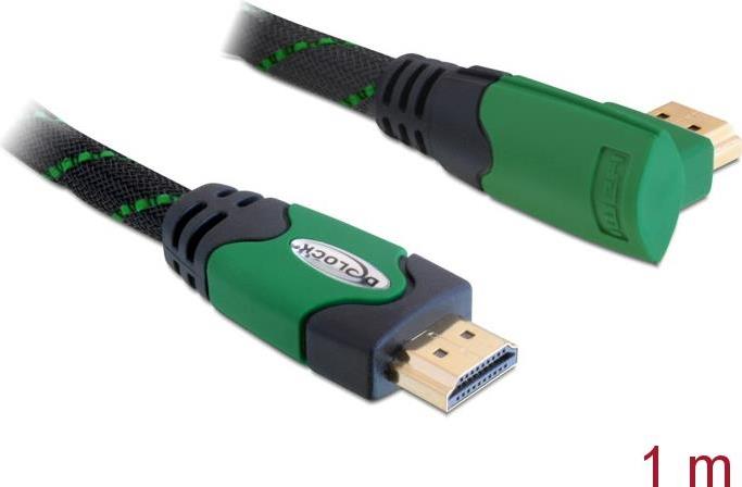 Delock High Speed HDMI with Ethernet - HDMI-Kabel mit Ethernet - HDMI männlich zu HDMI männlich - 1,0m - rechts-gewinkelter Stecker (82951)