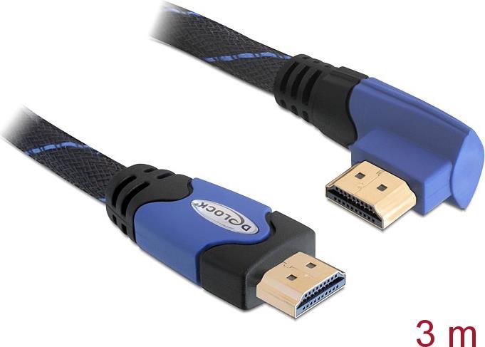 DeLOCK High Speed HDMI with Ethernet - Video-/Audio-/Netzwerkkabel - HDMI - 28 AWG - HDMI, 19-polig (M) - HDMI, 19-polig (M) - 3,0m - Verbindungsstück im 90°-Winkel (82957)