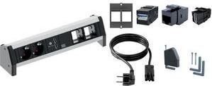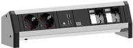 DESK Energieleisten als Auftischeinheit ist ideal für Arbeitsplätze mit Kombination aus Stromanschlüssen und Daten- oder Medientechnikmodulen.
