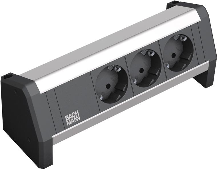 Bachmann DESK 1 - Steckdosenleiste - Wechselstrom 230 V - Eingabe, Eingang GST18 - Ausgangsanschlüsse: 3 - Deutschland - Schwarz, eloxiertes Aluminium (902.0048)