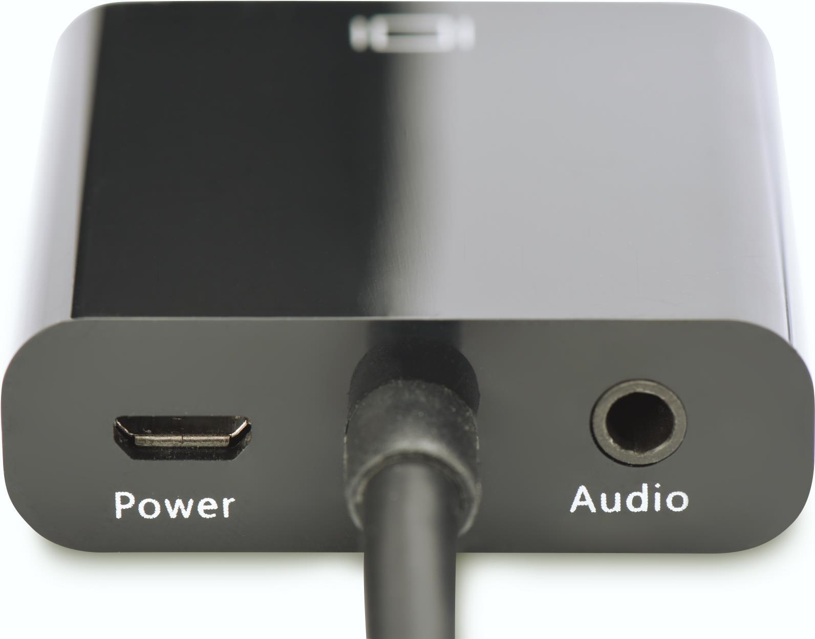 Der Digitus DA-70460 wandelt digitale HDMI Signale in analoge VGA Signale um. Verbinden Sie Ihre Geräte mit Micro-HDMI-Anschluss, wie Tablets, Ultrabooks oder Kameras, mit einem VGA-Monitor oder einem VGA-Beamer und genießen Sie Ihre Bilder, Videos oder Präsentationen im Großformat.Der Konverter ist zusätzlich mit einer 3.5 mm Audio-Klinken-Buchse ausgestattet. Ein eventuell vorhandenes Audiosignal wird so parallel konvertiert. Dies ermöglicht eine zusätzliche Audiowiedergabe durch den Anschluss an Ihre Lautsprecher oder Ihr Surround-System.