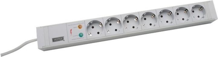 DIGITUS 48,30cm (19") Steckdosenleiste 7fach RAL7035 grau mit Ueberspannungsschutz ohne Schalter 16A 3600W (DN-19 PDU-7SO)