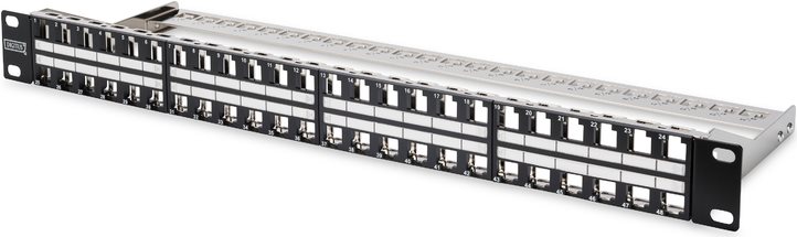 Das DIGITUS® 48-Port 1HE Keystone Patch Panel bietet Ihnen eine hohe Packdichte mit dem Vorteil von 48 Keystone Modulen auf nur einer Höheneinheit.