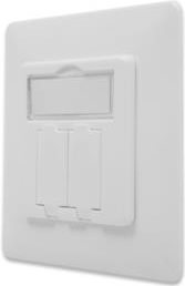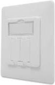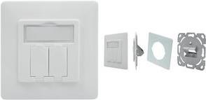 Die DIGITUS® Anschlussdose ist passend für die Installation der geschirmten DIGITUS® Keystone Module. Integrierte Staubschutzklappen sorgen für optimalen Schutz. Der Schrägauslass zur Verbindung des Moduls ist 45° vertikal. Die Anschlussdose ist vollständig designkompatibel zu den gängigen Schalterprogrammen.