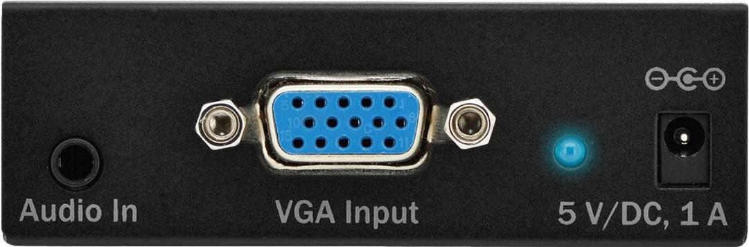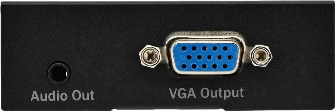 Verlängert ein VGA-Signal auf bis zu 300 m, wobei nur ein einfaches UTP-Kabel zwischen der Sende- und Empfangseinheit genutzt wird.