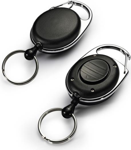 Ovales Jojo in ansprechendem Design verfügt über eine Metallclip-Befestigung und Federhaken und dient zur einfachen Kombination an allen DURABLE-Namensschildern oder Sicherheitsausweishaltern, die über eine Clip-Ausstanzung oder Nadel verfügen.
