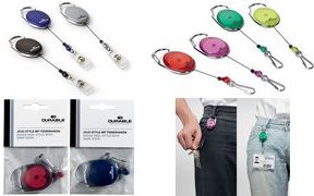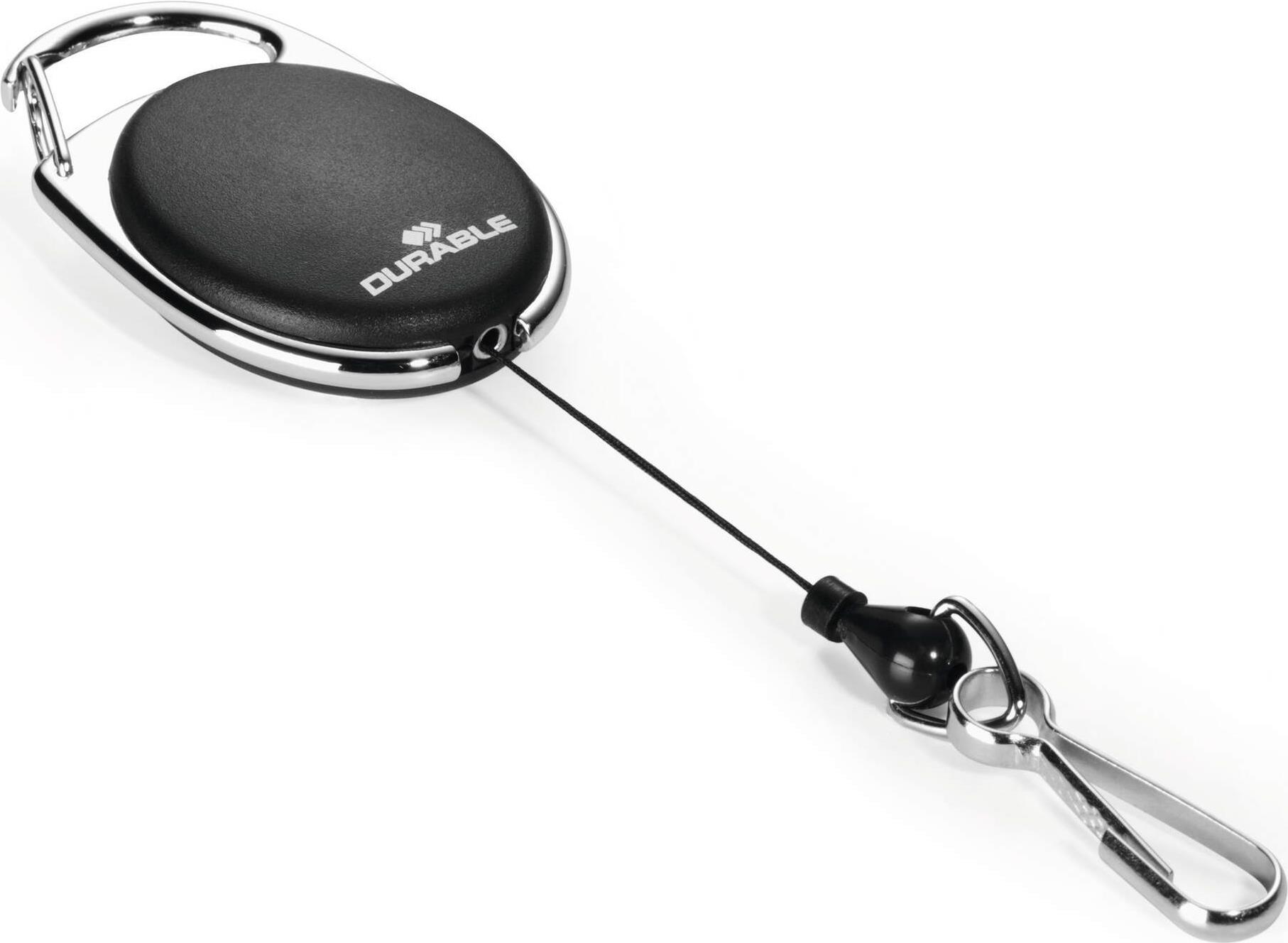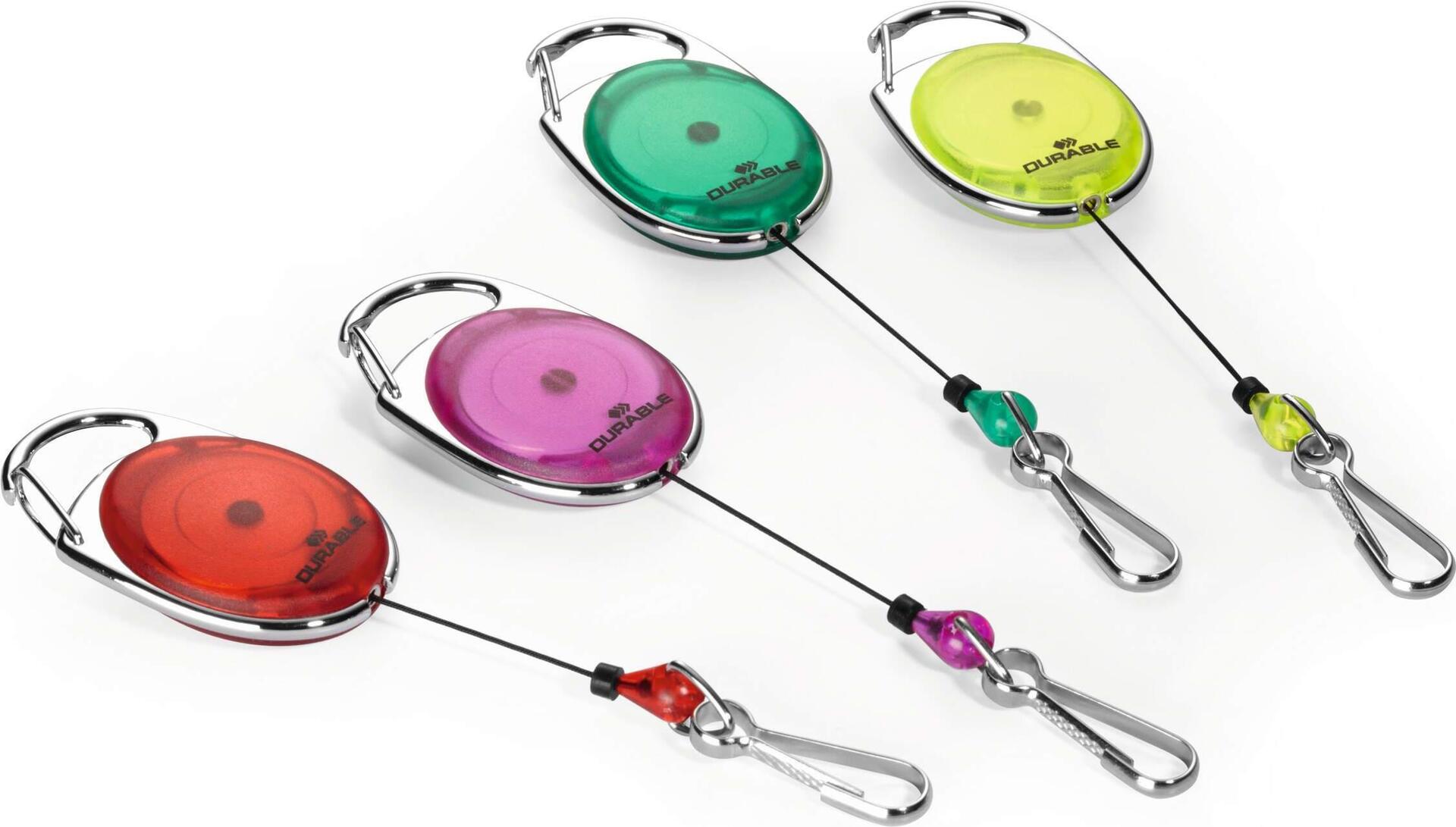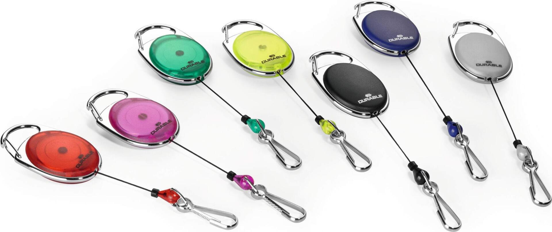 Ovales Jojo in ansprechendem Design verfügt über eine Metallclip-Befestigung und Federhaken und dient zur einfachen Kombination an allen DURABLE-Namensschildern oder Sicherheitsausweishaltern, die über eine Clip-Ausstanzung oder Nadel verfügen.