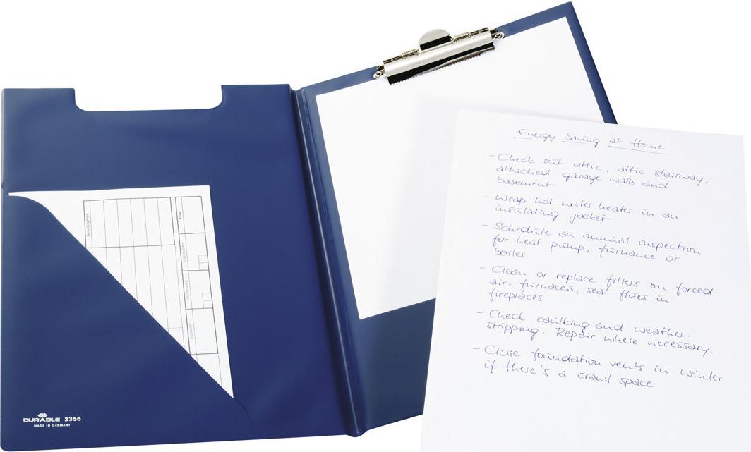 DURABLE Klemmbrett-Mappe, DIN A4, blau, aus Weichfolie mit Kartonverstärkung, große Dreiecktasche im Vorderdeckel (2355-06)