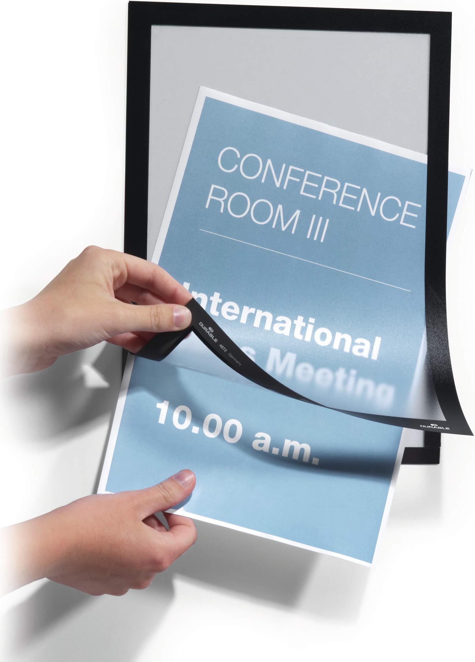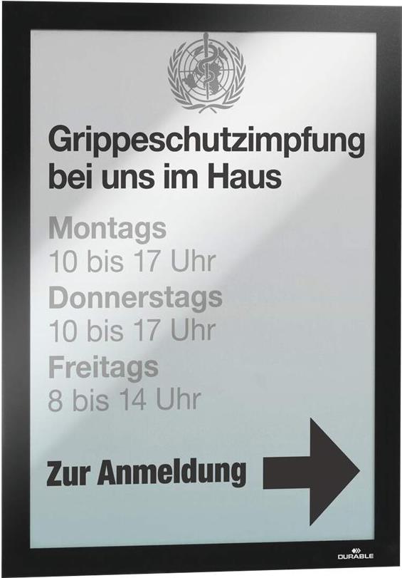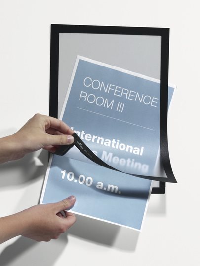 Absolut attraktives Informations- und Präsentationssystem. Selbstklebend. MAGAFRAME haftet dauerhaft auf allen gängigen Oberflächen und kann von glatten und festen Untergründen wie z.B. Glas wieder entfernt und neu angebracht werden. Durch den Magnetrahmen ist der eingelegte Informationsträger optimal fixiert. Die praktische aufklappbare Vorderseite ermöglicht Nutzern ein einfaches und schnelles Auswechseln von Informationen.