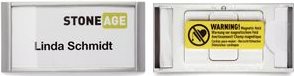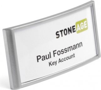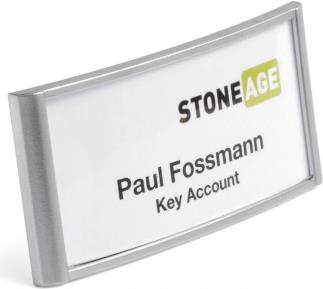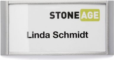 Die galvanisierten Namensschilder in Aluminium-Optik sind ideal für den Dauereinsatz auf Messen, im Hotel oder im Ladengeschäft. Die besonders langlebigen Namensschilder mit elegantem, silbernen Rahmen können bei Bedarf schnell neu beschriftet werden. Dank der dezenten Lasche auf der Rückseite kann das Einsteckschild kinderleicht ausgewechselt werden.