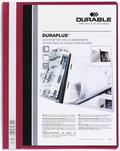 DURABLE Schnellhefter DURAPLUS, DIN A4, rot, überbreit transparenter Vorderdeckel mit DIN A4 Sichttasche, - 25 Stück (2579-03)