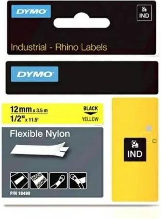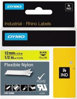 Dymo - Flexibles Nylonband - Schwarz auf Gelb - Roll (1.2 cm x 3.5 m) 1 Rolle(n) - für Rhino 4200, 6000, 6000 Hard Case Kit; RhinoPRO 1000, 3000, 5000 (18490)