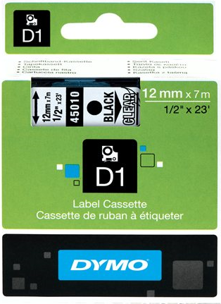 DYMO D1 - Selbstklebende Polyesteretiketten - schwarz auf durchsichtig - Rolle (1,27 cm x 7 m) - 1 Rolle(n) (45010)