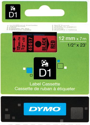 DYMO D1 Standard - Polyester - selbstklebend - schwarz auf rot - Rolle (1,2 cm x 7 m) 1 Kassette(n) Etikettenband - für LabelMANAGER 160, 210D, 210D Kit, 280, 360D, 420P, 500TS, PnP (S0720570)