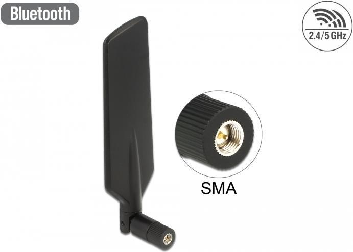 Delock LTE Antenne Dualband WLAN ac/a/b/g/n SMA Stecker 1 - 4 dBi omnidirektional drehbar mit Kippgelenk schwarz (12408)