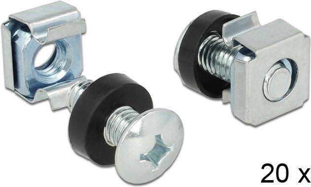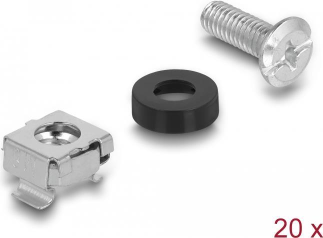 DeLOCK - Regalschrauben, Muttern und Unterlegscheiben (M6) - 25,4/48,3 cm (10"/19") (Packung mit 20) (42420)
