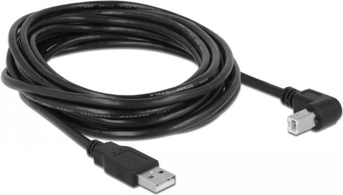 DeLOCK - USB-Kabel - USB2.0 Typ A, 4-polig (M) - USB2.0 Typ B (M) gewinkelt 90° - 5,0m - Schwarz (83530)