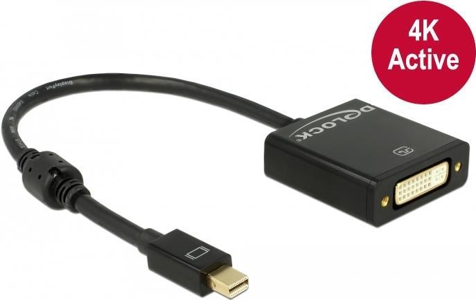 DeLOCK - DisplayPort-Adapter - Mini DisplayPort (M) - DVI-I (W) - 20cm (DisplayPort 1,2) - aktives Kabel (Signalregenerierung) - Schwarz (62603)