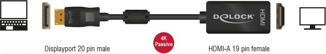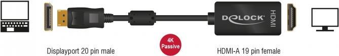 DeLOCK - Video- / Audio-Adapter - DisplayPort / HDMI - DisplayPort (M) - HDMI, 19-polig (W) - 20cm - (DisplayPort 1,2) - Schwarz (62609)