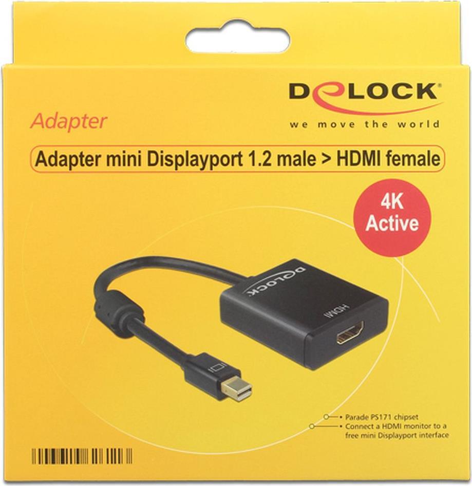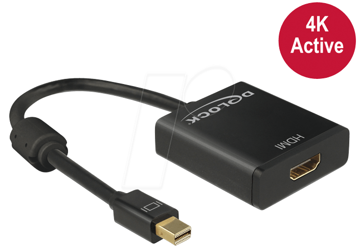 Mit diesem Adapter von Delock können Sie z.B. einen HDMI Monitor über eine freie mini Displayport Schnittstelle Ihres Systems anschließen. Der Adapter unterstützt eine Auflösung bis Ultra HD (4K) und ist abwärtskompatibel zu Full-HD 1080p. Der Adapter bietet eine aktive Konvertierung, somit ist er auch für Grafikkarten geeignet, die keine DP++ Signale ausgeben können.