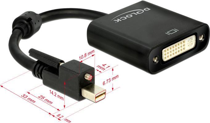 DeLOCK - Videoanschluß - DisplayPort / DVI - 32 AWG - Mini DisplayPort (M) - DVI-I (W) - 25cm - (DisplayPort 1,2) - Schwarz (62639)