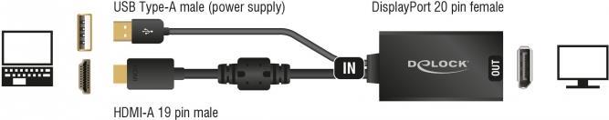 Mit diesem Adapter von Delock können Sie z.B. einen Displayport Monitor über eine freie HDMI Schnittstelle Ihres Systems anschließen.