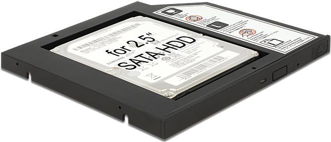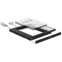 Diesen Delock Einbaurahmen im Slim-Format können Sie in einen 5.25" SATA Slim Schacht einbauen und darin eine 2.5" SATA Festplatte betreiben. Im Lieferumfang befindet sich eine universelle Frontblende, die Sie zum Beispiel beim Einbau in einen Mini PC nutzen können, bzw. wenn die vorhandene Blende Ihres Notebooks nicht passt.