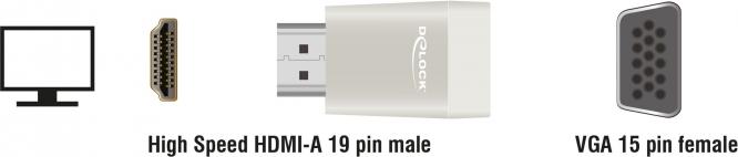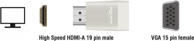 DeLOCK - Videoanschluß - HDMI / VGA - HDMI, 19-polig (M) - DB-15 (W) (65472)
