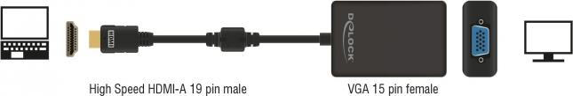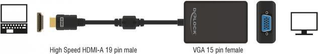 DeLOCK - Videoanschluß - HDMI / VGA - HDMI, 19-polig (M) - HD-15 (W) - 25,5 cm - Schwarz (65512)