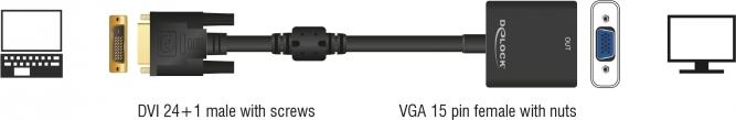 Mit diesem Adapter von Delock können Sie z. B. Ihren VGA Monitor an der DVI Schnittstelle Ihres Computers betreiben. Der Adapter wandelt die digitalen Signale des DVI Anschlusses in analoge Signale für den VGA Monitor um.