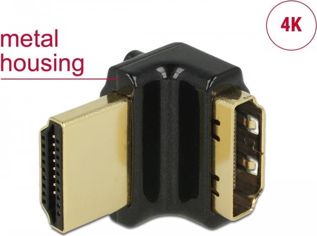 DeLOCK - Video-/Audio-/Netzwerkadapter - HDMI - HDMI, 19-polig (M) - bis - HDMI, 19-polig (W) - Schwarz - Verbindungsstück im 90°-Winkel (65663)