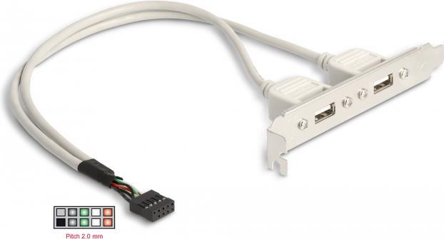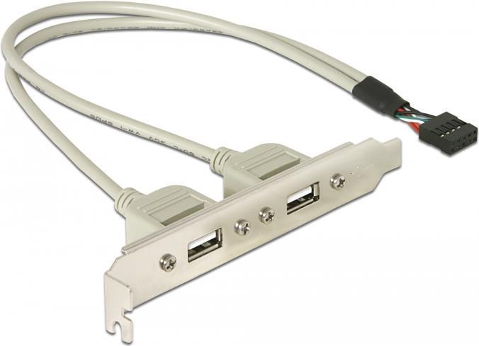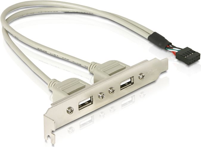 Die USB-Slotblende von Delock zum Einbau in einen Standard-PCI-Slot ermöglicht es Ihnen, einen internen USB 5pin Port herauszuführen, um Ihren PC um 2 externe USB2.0-A Ports zu erweitern. So können Sie verschiedene Geräte wie Kartenleser, externe Gehäuse, MP3-Player etc. anschließen.